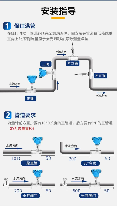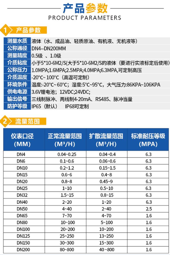 流量傳感器爲硬質合金軸承止推式,不僅保證精度,耐磨性能提高,而且具有結構簡單、牢固以及拆裝方便等特點。一般可達±0.5%R、±1.0%R重複性好,短期重複性可達0.05% - 0.2%結構緊湊輕巧,安裝維護方便耐壓等級高壓力損失小,流通能力強抗震動性能強
